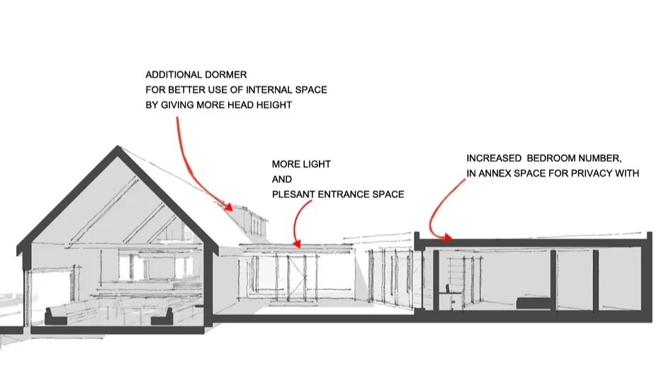 Proposed - Section through New Dining on Ground Floor and Larger Room on First Floor